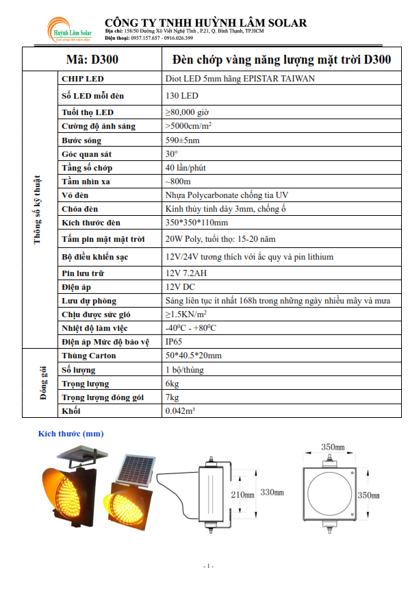 Catalog đèn chớp vàng D300, D200 năng lượng mặt trời bao gồm thông số chi tiết đèn, tấm pin năng lượng mặt trời, bộ điều khiển, pin lưu trữ